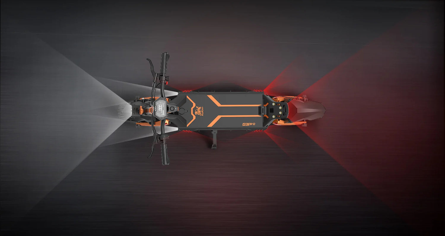 - Starker Dual-Motor (2×1200 W) mit bis zu 65 km/h.