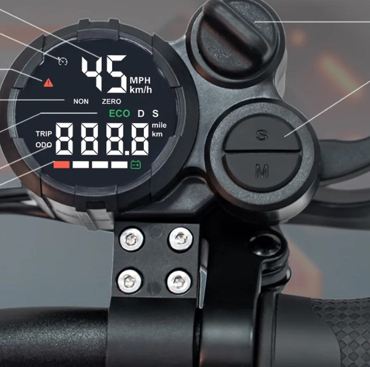 - Anzeige von Geschwindigkeit, Akku, Modus & Reichweite